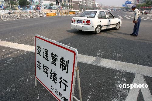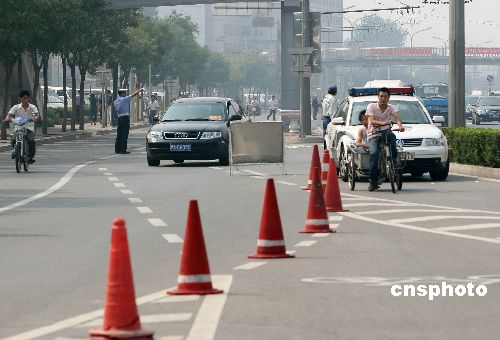 背景资料:首届“中国城市公共交通周及无车日活动”是由建设部发起,9月16日至22日在全国108个城市开展,其中9月22日定为“无车日”。截至目前,北京市机动车已达310万辆,并且仍以每天1000辆的速度在增长,环境污染和交通拥堵形势不容乐观,已成社会广泛关注的热点和难点问题。中新社发 鲁谷 摄