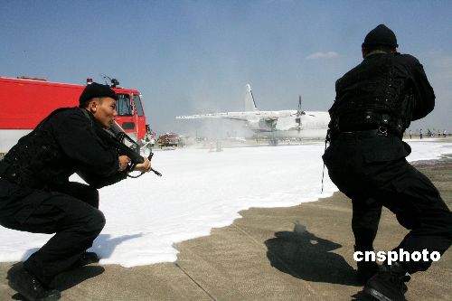 9月22日,武汉天河机场举行了一场反劫机应急救援综合演练。中新社发 林桦 摄