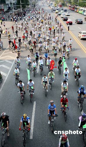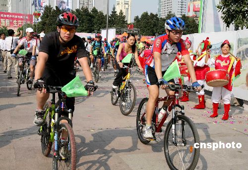 9月22日,为响应全国首个“无车日”,武汉市举办了千人自行车环城游活动,以鼓励市民利用自行车、公交或步行等绿色交通方式出行。千余自行车爱好者、中学生、大学生和普通市民积极参加。中新社发 王振武 摄