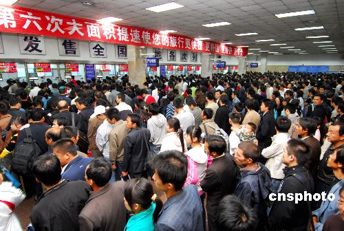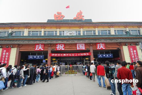 9月29日,西安火车站发送旅客8.45万人,迎来“十一”节前首个客流高峰。铁路部门采取加开临客、增设售票窗口、延长售票时间等措施方便旅客乘车。中新社发 唐振江 摄