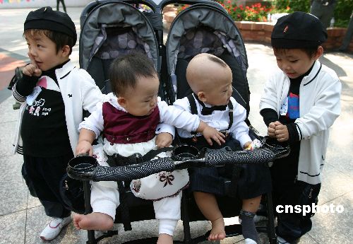 2007年10月2日,数百对双胞胎、多胞胎欢聚北京红领巾公园,参加第四届北京双胞胎文化节。红地毯大道两侧集中展示了历届双胞胎文化节活动的精彩照片,在主题广场,双胞胎劲歌劲舞,尽情展现自己的风采。中新社发 鲁谷 摄