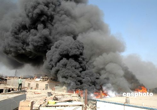 10月3日,新疆吐鲁番市新拓农贸市场发生火灾,造成一名小孩丧生,25间店铺、饭馆被烧毁,损失惨重。经过消防官兵2个多小时的奋力扑救,大火被扑灭。目前,起火原因正在进一步调查中。中新社发 刘健 摄