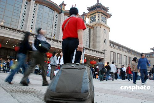 10月6日,国庆黄金周进入第六天。据铁道部称,全国铁路今明两天将迎来返程高峰。10月6日,北京铁路上下车旅客达20万人次。中新社发 李学仕 摄