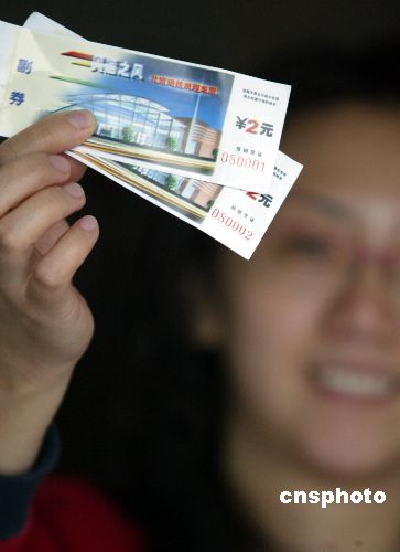 10月7日,北京地铁五号线开通试运营。家住南城丰台的小李购得了五号线宋家庄站首发车的第一张票。据她介绍,自己在城北的奥运村某银行工作,每天上班需要挤三四个小时的公交车纵穿整个北京城,而地铁五号线全程运行时间才40分钟,购买首票是为了珍藏北京城市交通的巨大变化。中新社发 杨可佳 摄