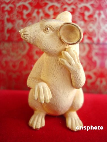 10月23日,苏州一家金店内一造型可爱的千足金鼠摆件,吸引了顾客的注意。据悉,2008年为农历鼠年,各种以鼠为题材的饰品在苏州纷纷上市。中新社发 王建康 摄
