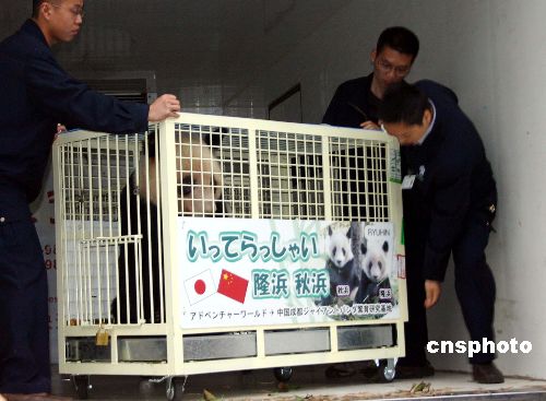 10月28日下午,经过近两天长途飞行的旅日大熊猫双胞胎“隆浜”和“秋浜”回到了故乡成都,将在成都大熊猫繁育研究基地开始新的生活。按照国家规定,它们将在这个新家经过二至三个月的隔离检疫以及饮食、气候、环境等方面的调整,之后再与中外游客见面。中新社发 魏姝 摄
