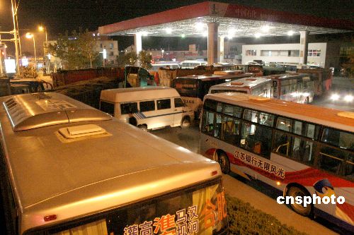 10月29日20时许,在江苏连云港市区一加油站,加“0号”柴油的车辆排起长龙。连日来,该市出现“0号”柴油供应紧张局面。据了解,由于近期国际油价居高不下,导致一些炼油厂生产减少,加上最近是农忙时节,需求量较大,造成了此次柴油供应吃紧的局面。中新社发 王振 摄