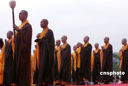 10月30日,中国(莆田)南北少林武术公演盛会在莆田南少林寺隆重举行,图为福建佛学院学生梵唱团108位法师表演《和平梵颂》。中新社发 张勤 摄