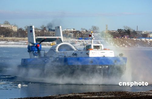 11月1日,黑河口岸正式开通与俄罗斯布拉戈维申斯克口岸的旅客气垫船运输。据介绍,通航当天,中俄双方共有7条气垫船投入了运营,其中,中方动用3艘、俄方动用4艘,达到双方总运力的70%。2007年的气垫船旅客运输为每周七天工作制,工作时间从北京时间8:00至17:00,无午休工作制。中新社发 张迅 摄