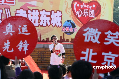 十一月三日适逢周末,北京奥运志愿心乐团走进正在火热举办的秋季书市,为热闹非凡的书市增添了更多的激情。中新社发 任海霞 摄