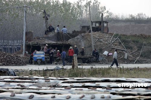 十一月五日,河南省淅川县一处砖窑场工人正在生产砖坯。这家砖窑场曾经被查处,据一位民工透露,大约两三个月前,这里仍有不少“黑工”在干活,现在都转走了,只剩下少数本地民工。中新社发 慎重 摄