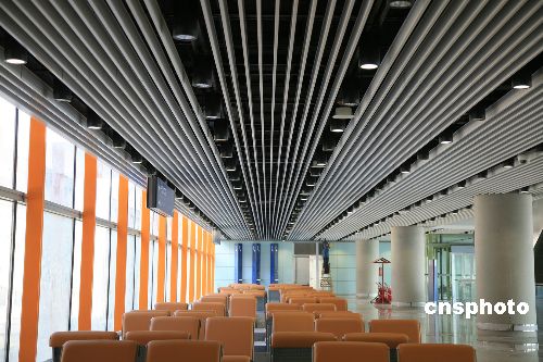 2007年11月6日,被尊称“国门工程”的2008年北京奥运会项目——首都机场三号航站楼工程露出庐山真面目,内部精装修、机电设备、信息系统等项目基本完工,近日进行验收。首都机场三号航站楼是北京2008年奥运会项目,该航站楼总建筑面积90.2万平方米,长2900米,宽790米,建筑高度45米,由T3A主楼、T3B国际候机指廊、T3C国际候机指廊组成,其中三号航站楼主楼建筑面积达55万平方米,是国内目前最大的单体建筑。中新社发 洪涛 摄