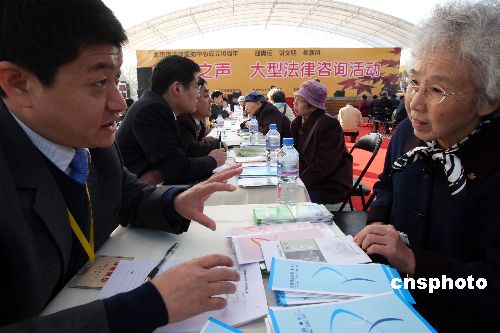 十一月八日,北京法律援助中心的数十位律师来到正在举办的秋季书市,为各界民众提供法律咨询并现场答疑解惑。中新社发 任海霞 摄