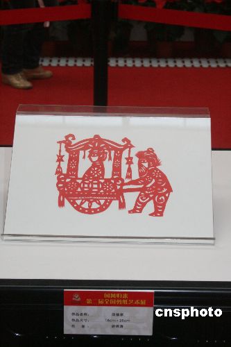 11月8日,第八届中国艺术节上,以国风归来为主题的第二届全国剪纸艺术展在武汉市武昌东湖畔湖北艺术馆开展。胡锦涛总书记剪纸《回娘家》亮相艺术展上。