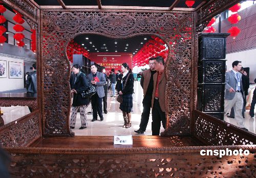 十一月九日,一张价值超过一千万元人民币的黄花梨床在河南郑州奢华物品展亮相。这张由黄花梨木制作而成的床刻工精良,床腿用象牙镶嵌,是郑州奢侈品展中最昂贵的单品,加上柜子、茶几等,整套家俱价值上千万元人民币。当日,由国际奢侈品联合会等机构主办的奢华物品展在河南郑州举行。中新社发 慎重 摄