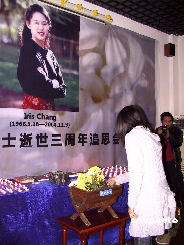 十一月九日,美国华裔女作家张纯如逝世三周年。江苏省社科院专家、南京高校历史系教授、南京大屠杀幸存者后代、在宁就读的大学生等社会各界人士,共聚南京民间抗日战争纪念馆,在这里缅怀追思这位美丽坚强的女性。中新社发 朱晓颖 摄