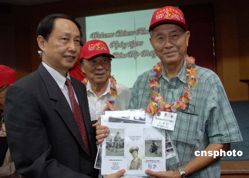 “2007美国华裔飞虎队老兵及家眷回乡访问团”11月15日抵粤参观访问。访问团将在广州、江门、新会、台山等地进行省亲活动,并向广东华侨博物馆等广东省三家博物馆单位捐赠华裔飞虎队老兵文物,八十三岁的老兵阮福志向省华侨博物馆捐赠珍贵的历史照片。中新社发 梁永强 摄