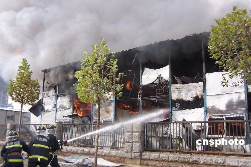 11月18日,安徽合肥西二环与望江西路交叉口附近,一百多间简易宿舍突遇大火,房内的物品被烧得几无完物,住在这里的七八百位建筑工人,顿失居住场所。大火持续了一个多小时,最终被消防官兵扑灭。事故原因目前正在调查中。中新社发 朱小辉 摄