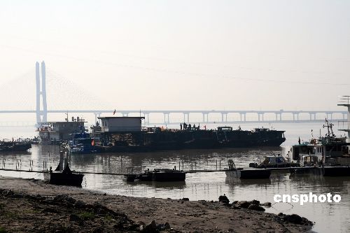 11月20日,鄱阳湖畔停泊许多船只。进入冬季后,鄱阳湖水位下降迅速。入长江的江西省湖口县,湖畔滩涂面积增大,河道变窄,水上运输日趋繁忙。据水文资料显示,11月9日,湖口水位9.54米,20日为8.44米,平均每天以10厘米的幅度下降,水流量也在减缓。中新社发 张 俊 摄