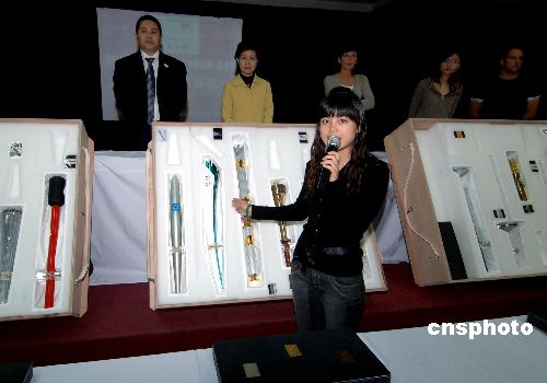 十一月二十一日,国际奥委会奥林匹克珍藏品中国巡展.福州站开箱暨点交仪式在福州国际会展中心举行。仪式后奥林匹克文化传播使者汤柳柳向在场的新闻媒体记者介绍历届奥运会火炬珍品。国际奥委会奥林匹克珍藏品中国巡展将于十一月二十五日在福州展出,包括历届奥运会的奖牌等共731件珍品将亮相。中新社发 刘可耕 摄