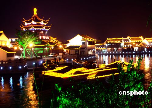 11月24日晚,江苏苏州白居易纪念馆的夜景迷人。中新社发 王建康 摄