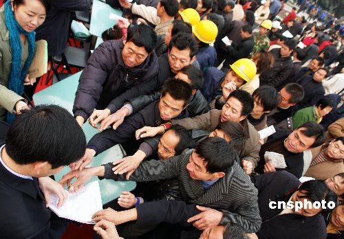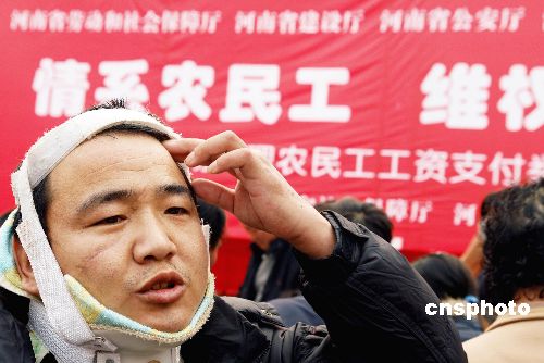 2007年11月30日,郑州市紫荆山广场举办“情系农民工、维权促和谐——现场受理农民工工资支付举报投诉活动”,活动由河南省劳动和社会保障厅、省建设厅、省公安厅、省交通厅、省总工会等联合主办,全省各地市同时进行。活动吸引了众多的农民工现场投诉,从而拉开了春节前河南省为农民工维权活动的序幕。中新社发 马健 摄