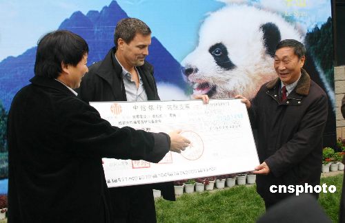 12月8日,全球著名风险投资专家、美国国际数据集团IDG亚洲区总裁、首席执行官熊晓鸽(左一)出资100万元人民币,认养成都大熊猫繁育研究基地去年出生的一对双胞胎大熊猫,将其命名为“乐山”和“乐水”。中新社发 杨杰 摄