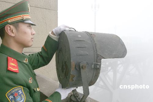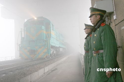 12月20日,武警守桥官兵在南京长江大桥桥面巡逻。连日来,南京遭遇50年来连续性大雾袭击,为1951年以来大雾过程持续时间最长的一次,南京地区交通受到严重影响。武警江苏总队南京支队守桥部队加大巡逻力度,确保交通畅通和过桥行人、车辆安全。当日,江苏省首次大雾红色预警信号。中新社发 韩华 摄