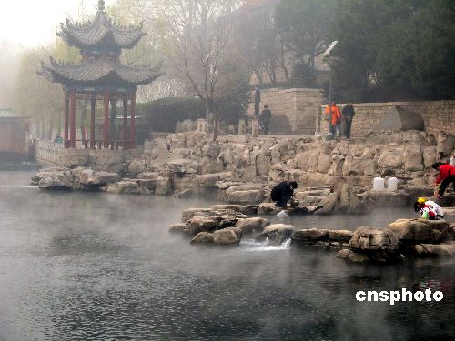 由于低温和湿润的空气,12月20日,山东济南众泉出现“云雾润蒸”景象,大片水汽从泉水和护城河水面升起。据悉,该景观一般出现在冬季特殊天气。中新社发 周青先 摄