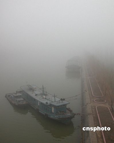 图为浓雾弥漫下的大运河山东台儿庄段。12月20日,大运河山东台儿庄航段浓雾弥漫,能见度不足20米,到下午能见度不足百米,万年船闸和台儿庄船闸从今晨开始全线停止放船,浓雾给船队通航和船民生活带来不便。中新社发 高启民 摄