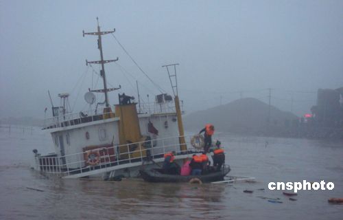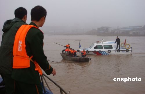 12月22日,“锦峰1号”货轮在浙江瑞安飞云江沉没。当日晨6时30分许,“锦峰1号”货轮运载近千吨沙石返回浙江瑞安,在途经飞云江大桥时,由于浓雾弥漫,能见度底,货轮左弦与水下桥墩发生碰擦,致使左弦受损进水,船员进行紧急堵塞无效,后欲急速靠岸未果,船体迅速下沉。接报后的当地公安边防、海事部门迅速驾驶营救船艇赶赴现场,将失去动力的救生船上的五名船员安全转移到岸上。中新社发 蔡宽元 摄