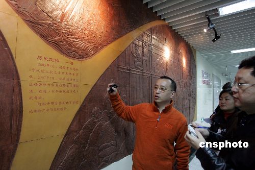 十二月二十三日,上海轨道交通4号线全线贯通进入最后试运营演练,记者在南浦大桥站,看到一幅巨型浮雕,真实描绘了2003年7月,4号线在建过黄浦江段时,发生重大渗水事故,后来地铁建设者奋力抢修、原位修复的过程。据悉,该重大渗水事故,曾引起海内外媒体广泛关注。如今,堪称上海轨道交通“金环”的4号线贯通在即,新浮雕让参观者感叹上海人务实求真。中新社发 潘索菲 摄