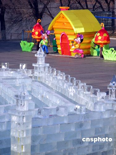 2007年第28届黑龙江齐齐哈尔龙沙冰雪游览会将于12月28日开幕,期间恰逢全国第十一届冬季运动会在该市举办,冰雕艺人正在赶制冰灯作品。该市还特请四川自贡的彩灯制作艺人前来献艺,届时南国的彩灯将装扮北国的冰雪,冰灯和彩灯将交相辉映。 中新社发 王云龙 摄