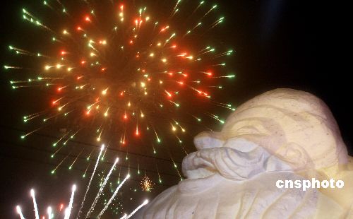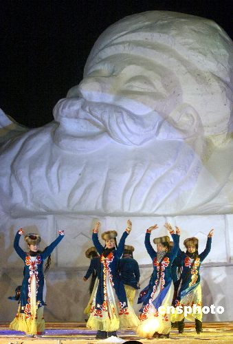 十二月二十六日晚,新疆乌鲁木齐维斯特滑雪场,2007丝绸之路冰雪风情节在一场漫天飘舞的大雪中拉开序幕,众多市民及旅游界人士冒着零下二十多度的气温参与其中。据了解,本届冰雪节将在乌鲁木齐市多个滑雪场设有分会场,并且在该市重点的休闲区域,随处可见冰雕、雪雕作品,期间还将举办滑雪表演、单板表演等,同时还有大众参与的雪地越野赛、雪地拔河比赛等冰雪运动。中新社发 刘新 摄