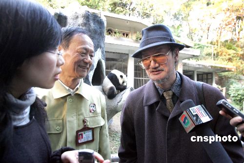 十二月二十七日,六十三岁的日本奈良医科大学教授东野义之来到福州的熊猫世界,和他认养的“小青”见了第一次面。他以一万美金取得了熊猫世界中一只叫“小青”的大熊猫一年认养权。中新社发 杨婀娜 摄