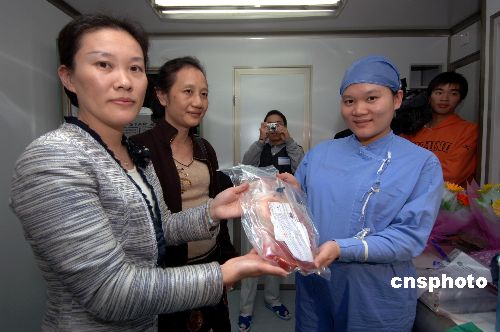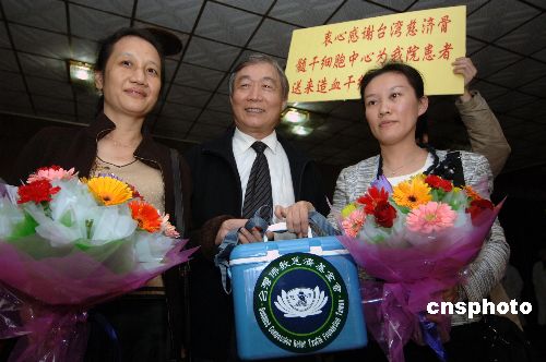 十二月二十八日晚八时左右,福建医科大学附属协和医院的医务人员,从台湾花莲途经台北、香港、福州辗转九个小时,将台湾同胞捐赠的造血干细胞送达福州医院,并于当晚九时左右,成功注入福建白血病患者俞昌盛体内。中新社发 王东明 摄