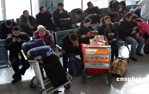 1月2日上午,乌鲁木齐国际机场出现大雾天气,致使部分航班延误,数百名乘客滞留机场。记者从机场问讯处获悉,因乌鲁木齐国际机场被大雾笼罩,能见度不符合飞机降落标准,成都—乌鲁木齐、北京—乌鲁木齐等国内航班被迫备降敦煌机场,导致从乌鲁木齐飞往成都和北京等地的乘客滞留机场。据了解,乌鲁木齐到库尔勒、伊宁等地的疆内航班没有受到影响,仍可正常起飞。截至发稿时,机场大雾仍未退去,乘客们仍在等待天气好转。中新社发 李雄心 摄