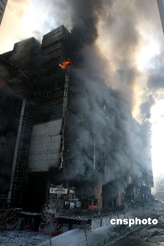 一月三日,新疆乌鲁木齐德汇国际广场批发市场大火仍未扑灭,浓烟弥漫,并释放出大量有毒气体,不时有窗户玻璃掉落,大楼随时有坍塌危险。当地警方已在整个大楼周边百米范围内拉起警戒线,禁止任何人员和车辆进入。消防部门称,为扑灭这场大火,已有两名消防人员殉职,一人受伤。截至发稿时,大火已持续燃烧十七个小时。中新社发 刘新 摄