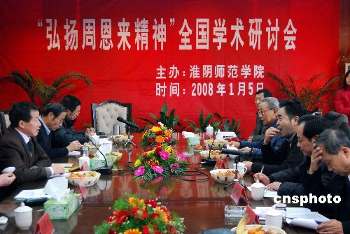 1月5日,北京、上海、内蒙古、陕西等地的30余名周恩来研究专家齐聚江苏淮阴师范学院,围绕“宏扬周恩来精神”,讨论周恩来精神对中华民族精神的升华及其当代价值,纪念周恩来诞辰110周年。中新社发 方东旭 摄