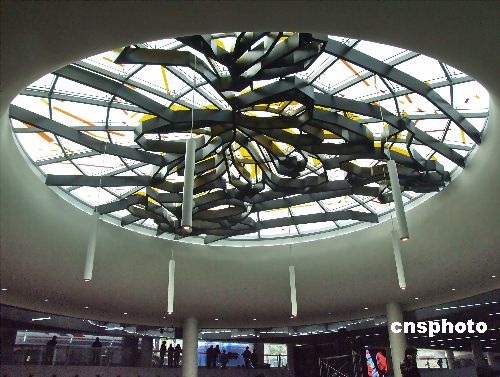 2008年1月7日消息,上海人民广场站1、2、8号线三角地换乘大厅的改造已于日前全部完工,其顶部采用全新镂空设计,造型如一朵朵徐徐绽放的白玉兰花。中新社发 井韦 摄