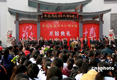 2008年1月8日,安徽徽州文化博物馆落成开馆。该馆馆藏的近10万件(册)历史藏品全面、系统、完整地展示了徽州文化。博物馆坐落在黄山市,占地157亩,建筑面积14000平方米,总投资7000万元,是集徽州文化展示、收藏、研究、培训、非物质文化遗产演绎、交流旅游观光为一体的国家大型地方综合性博物馆。徽州文化博物馆是以徽州文化为基本内容、徽州地理山水为背景、徽派建筑风格为基调的一组多功能徽派风景园林建筑,由陈列区、收藏区、文化产业区等组成。中新社发 方也广德 摄