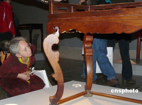 2008年1月9日,“2008中国古典家具精品展暨国际学术研讨会”在北京拉开帷幕。这是首次举办专门针对中国古典家具研究与展示的国际性活动,十几位海内外古典家具研究学者和专家,将就中国古典家具的历史与现状、传承与发展等问题进行深入的探讨,同时集中展出了近60件来自海内外著名藏家的明清家具顶尖精品。中新社发 金城 摄