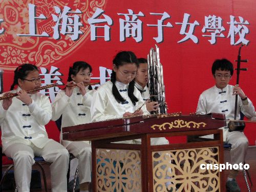 图为上海台商子女学校的学生在表演民族器乐。