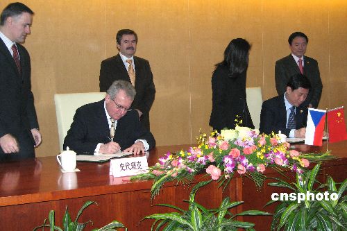 一月二十三日,捷克政府在上海与中方签署2010年上海世博会参展合同。捷克官方同时公布其参展上海世博会的展示主题为“文明的果实”。上海世博会捷克展馆位于世博园C片区。该国政府将向中方租用2000平方米的租赁馆,营造包括一处人工瀑布景观在内的时尚展区。捷方表示,预计在上海世博会举办期间,捷克展馆每小时有望吸引三千五百名游客。此外,捷克首都布拉格还将参与上海世博会“城市最佳实践区”的案例申报。中新社发 许晓青 摄