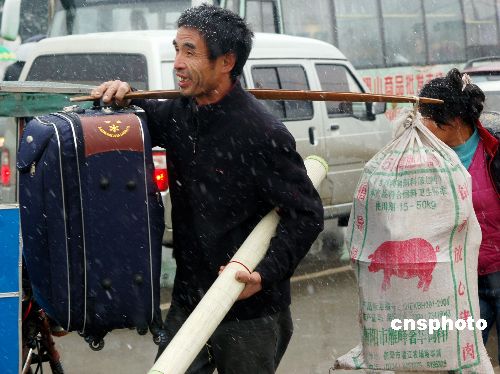 图:苏州外来务工者冒雪返乡