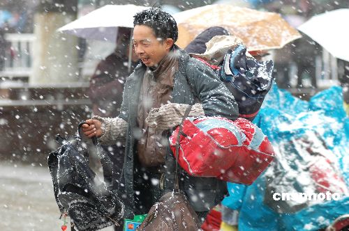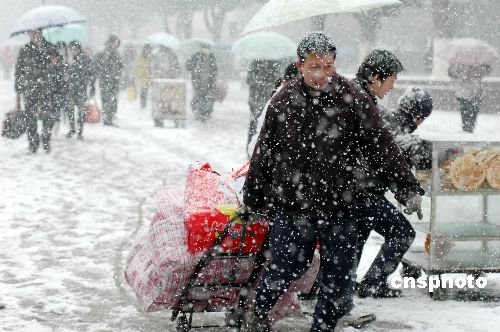 1月27日,旅客顶着风雪准备进入无锡站乘车回家。1月26日起,无锡再次遭遇大范围降雪天气。受大雪影响,锡城大部分高速被迫关闭,大量旅客回乡心切,纷纷改乘火车,无锡站客流激增。中新社发 迭戈 摄
