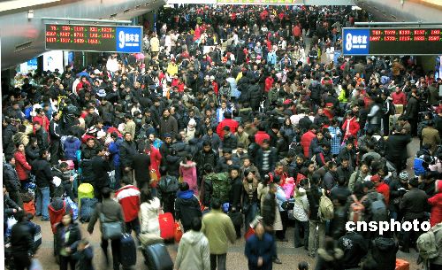 1月28日,中国铁路春运达到高峰时期,北京火车站每日发送旅客达30万人次。站方目前已启动应急预案,如遇到客车晚点、旅客滞留等情况,车站将开放六个可容纳24000人的临时候车区供旅客休息、候车。中新社发 邹宪 摄