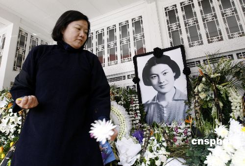 1月28日,章含之的女儿洪晃在家中灵堂内整理花篮。1月26日上午8时25分,上世纪70年代中国杰出的外交官之一、著名学者章士钊之女章含之因肺部并发症于医院抢救无效去世,享年73岁。章含之是著名民主人士章士钊的养女,曾做过毛泽东的英文教师,是中国著名外交家乔冠华的夫人。中新社发 杜洋 摄