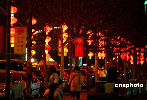 鼠年新春将至,北京一些生活小区张灯结彩,一派节日气氛。随着北京现代城市建设的发展,许多平房四合院逐渐被现代化的楼宇生活小区取代,每逢节日喜庆时节,物业公司逐渐承担起烘托节日气氛的义务。中新社发 宋吉河 摄