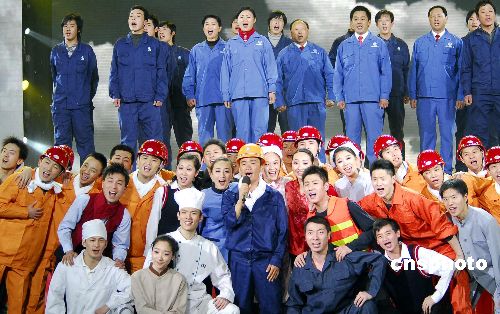 1月30日晚,中央电视台2008春节联欢晚会节目彩排在一号演播大厅进行,由于南方持续大雪灾情严重,节目组临时决定加入慰问受灾地区的内容,而先前安排的一些节目不得不合并,甚至被取消。而原本就备受关注的《农民工之歌》,在此次南方经历雪灾之后,显得越发契合春晚的主题和气氛。 中新社发 杨可佳 摄